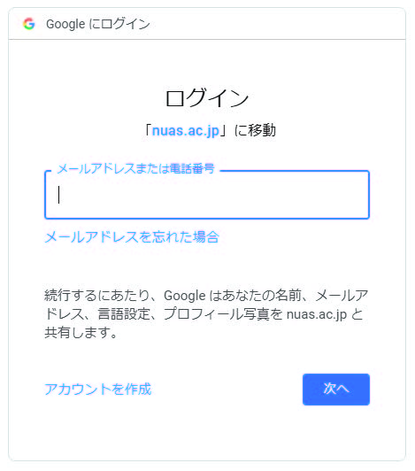 3. ログイン画面が出た場合は、大学のGoogle アカウントのアドレス・パスワードを入力。
